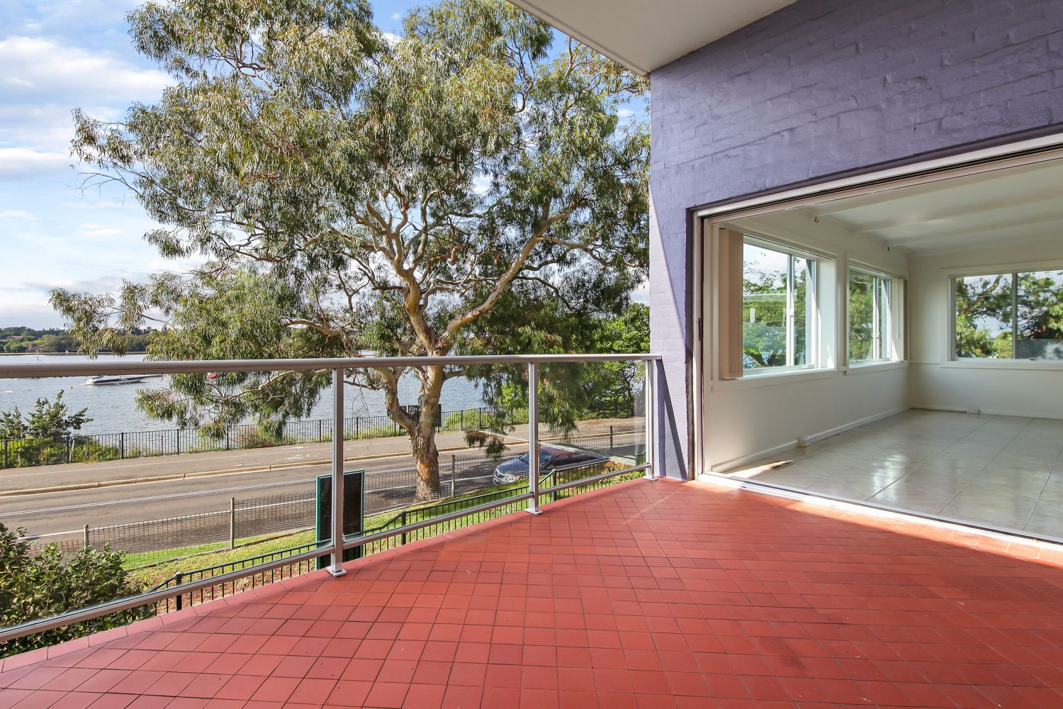 *Light filled living room 6m x 4.2m with fantastic water views and balcony