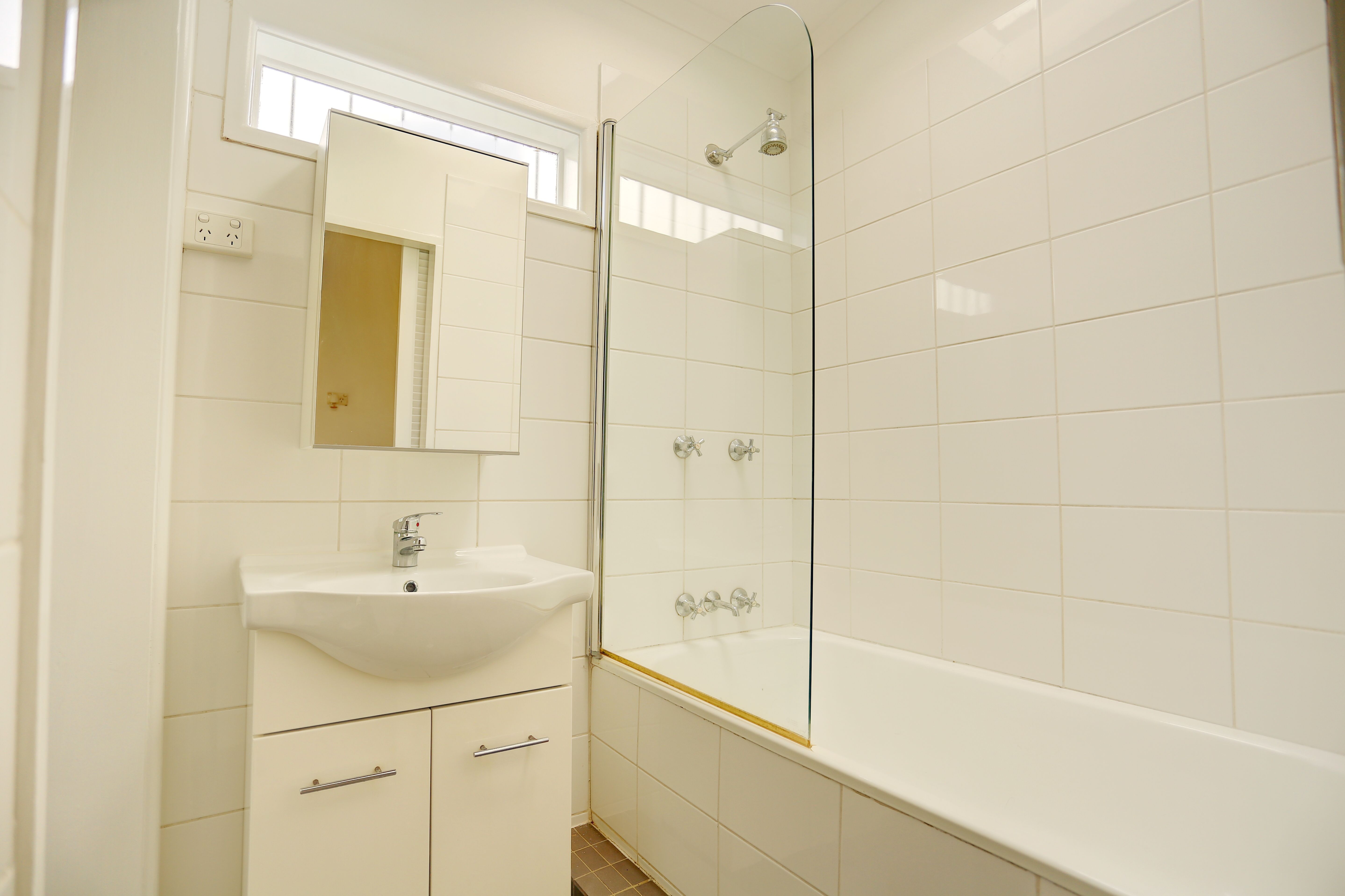 *Bathroom with bath and shower over